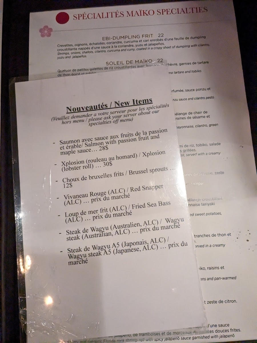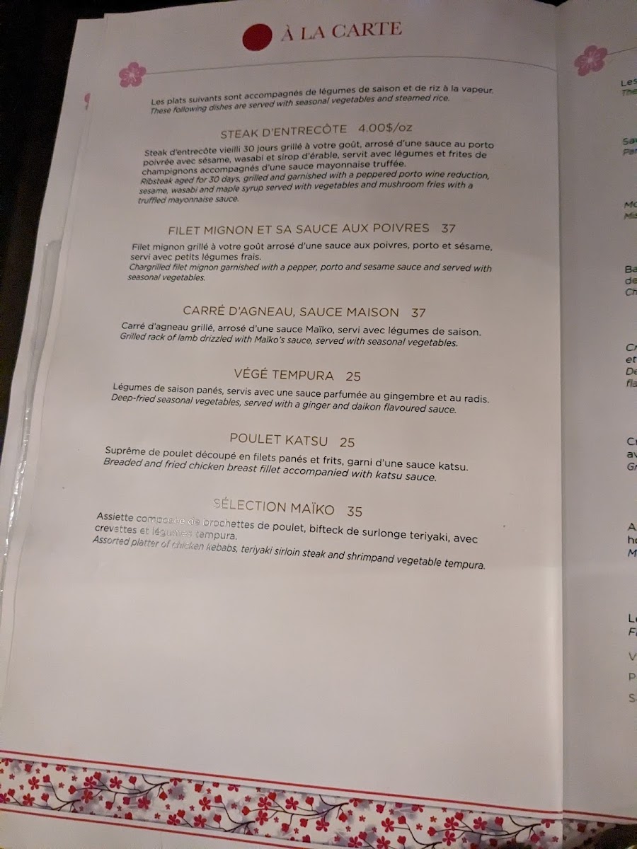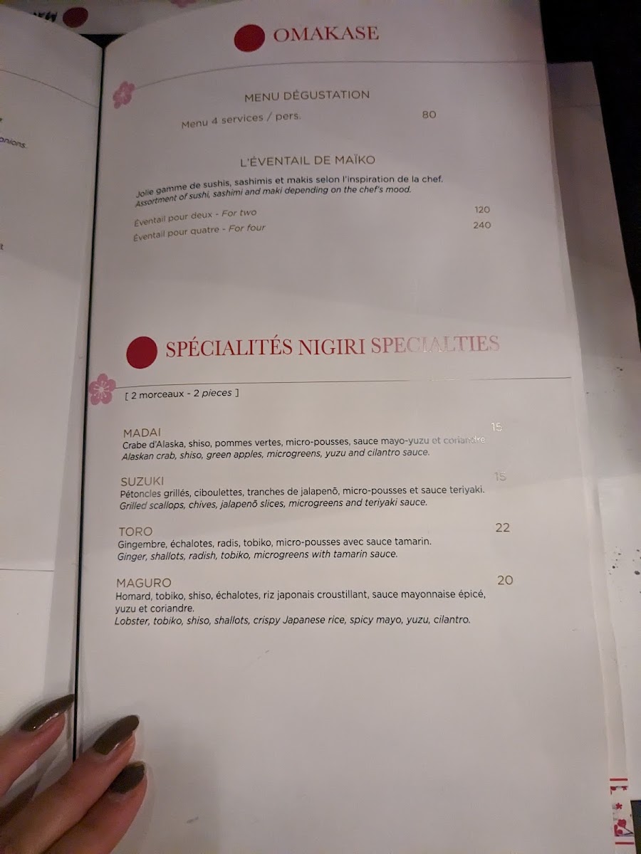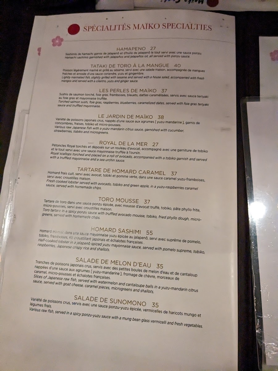 Maiko Sushi Menu