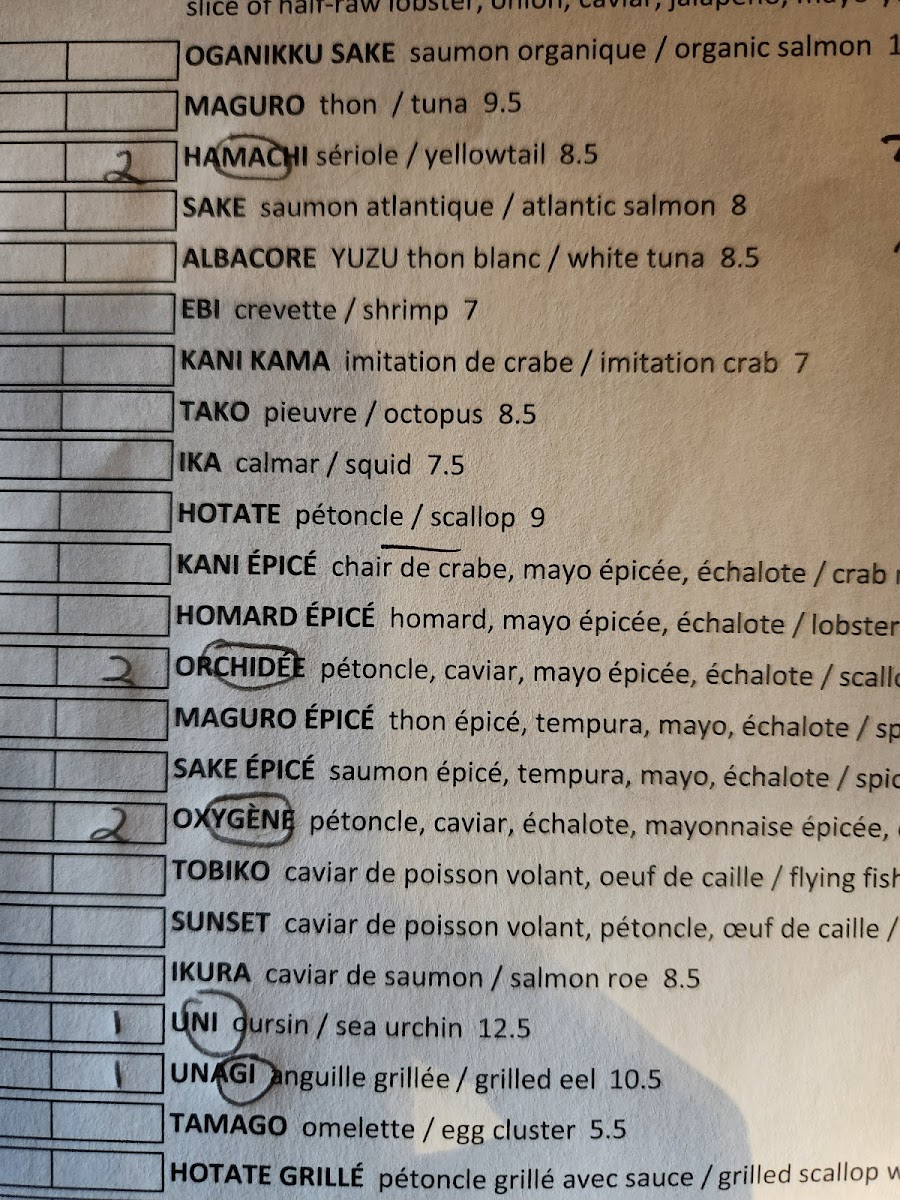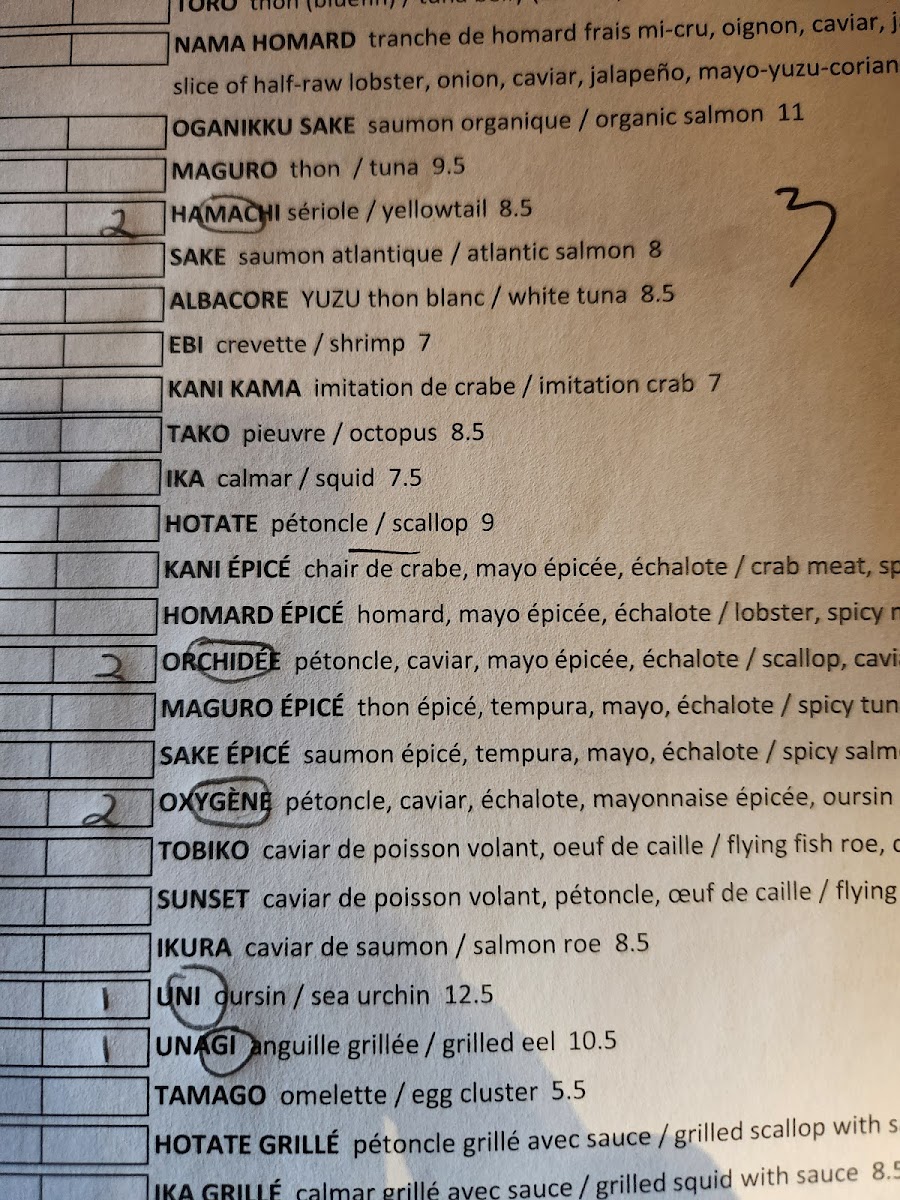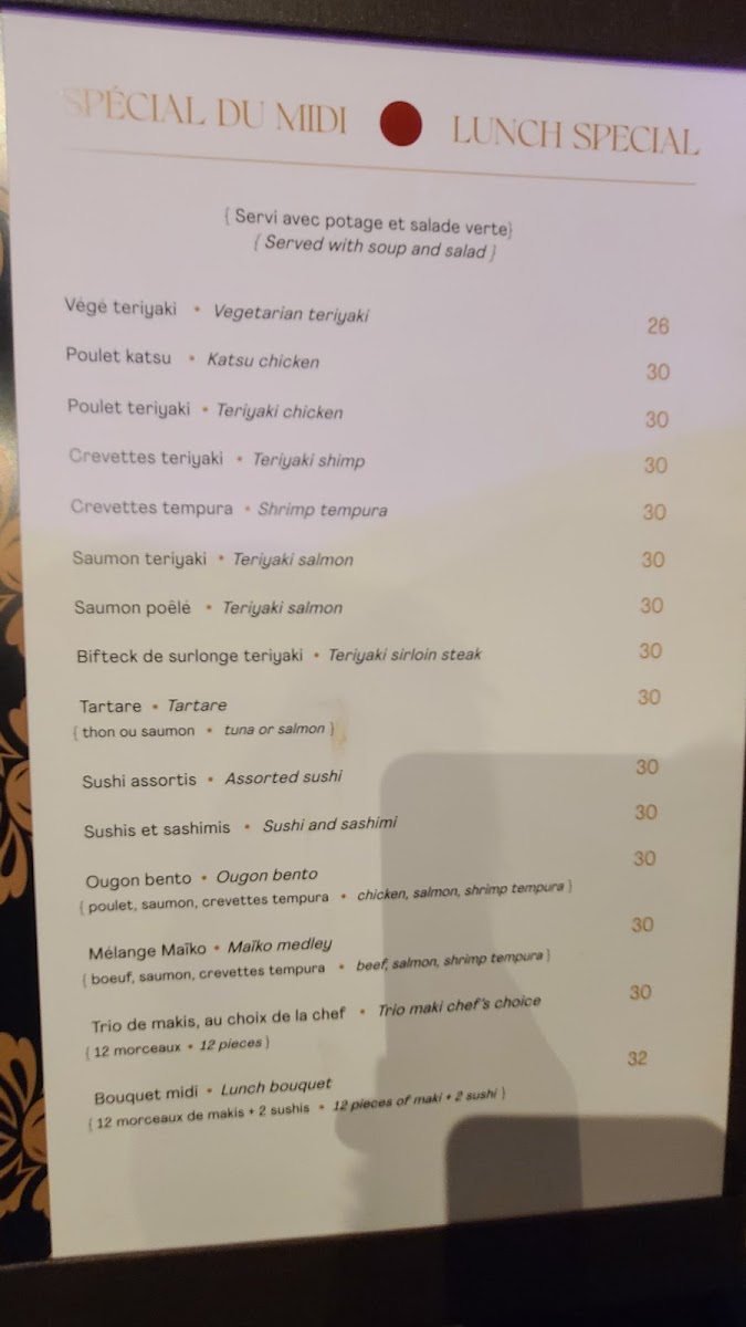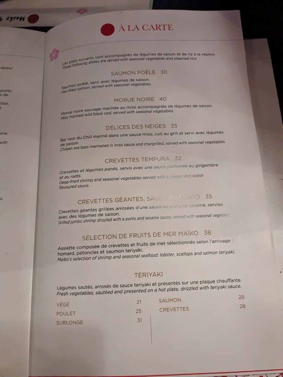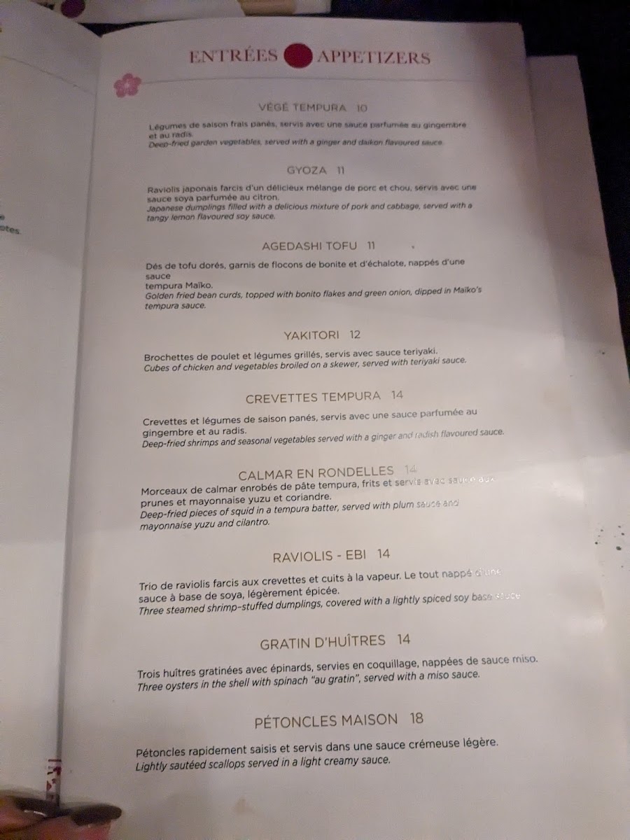 Maiko Sushi Menu